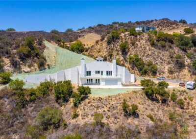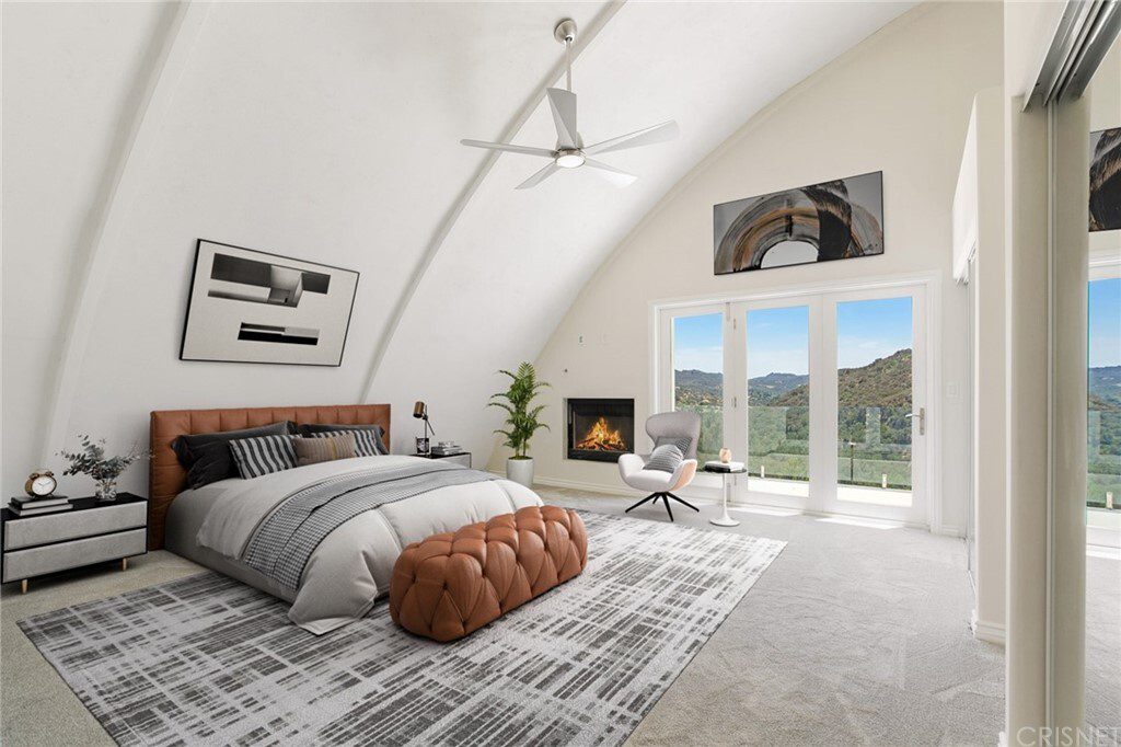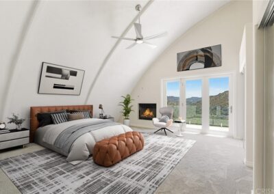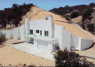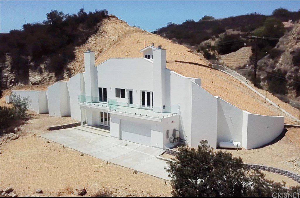 One of the most unique and eco-friendly homes in Los Angeles County! This dome home is built into the hills with beautiful mountain and canyon views. The home is extremely sustainable and highly resistant to earthquakes, fires and floods. Master has stunning views, fireplace, balcony, and large walk-in closet as well as 2 additional closets. Master bath with soaker tub and separate shower wired for steam. Two additional bedrooms upstairs, both with views. Kitchen with center island, 3 sinks, dual source oven, with pot filler, and huge walk-in pantry. Theater room/family room with bathroom.