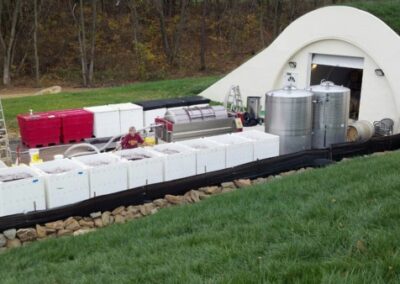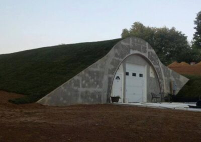 The use of subterranean structures to store wine dates back to ancient Rome. Today, the wine industry is embracing the eco-friendly benefits of wine caves. Whether natural or man-made, caves have the ideal conditions for storing and aging wine. Constant temperature and humidity levels are critical to winemakers. Wine caves naturally create a prime environment without the need for complex electrical humidity and temperature control systems. Reduced energy consumption and barrel evaporation offers a substantial increase in yield. Gravity flow winemaking is a practice that is becoming well recognized by wine makers and vino fanatics. The process in gravity flow (also known as gravity fed) winemaking, allows for the wine to stream from winery levels. Unlike above ground traditional cellars there is no use of pumps or mechanical force, enabling the wine to gently extract colour, flavour and tannin. For a structure like this, it would be very easy to place a fermentation/crush pad on the green roof. The must would then be gravity fed into the cave.