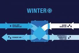 In the winter, that means that the cold, dry outside air is preheated and humidified by the outgoing warm interior air. And in the summer, the warm, humid outside air is precooled and dehumidified by the outgoing air-conditioned interior air.